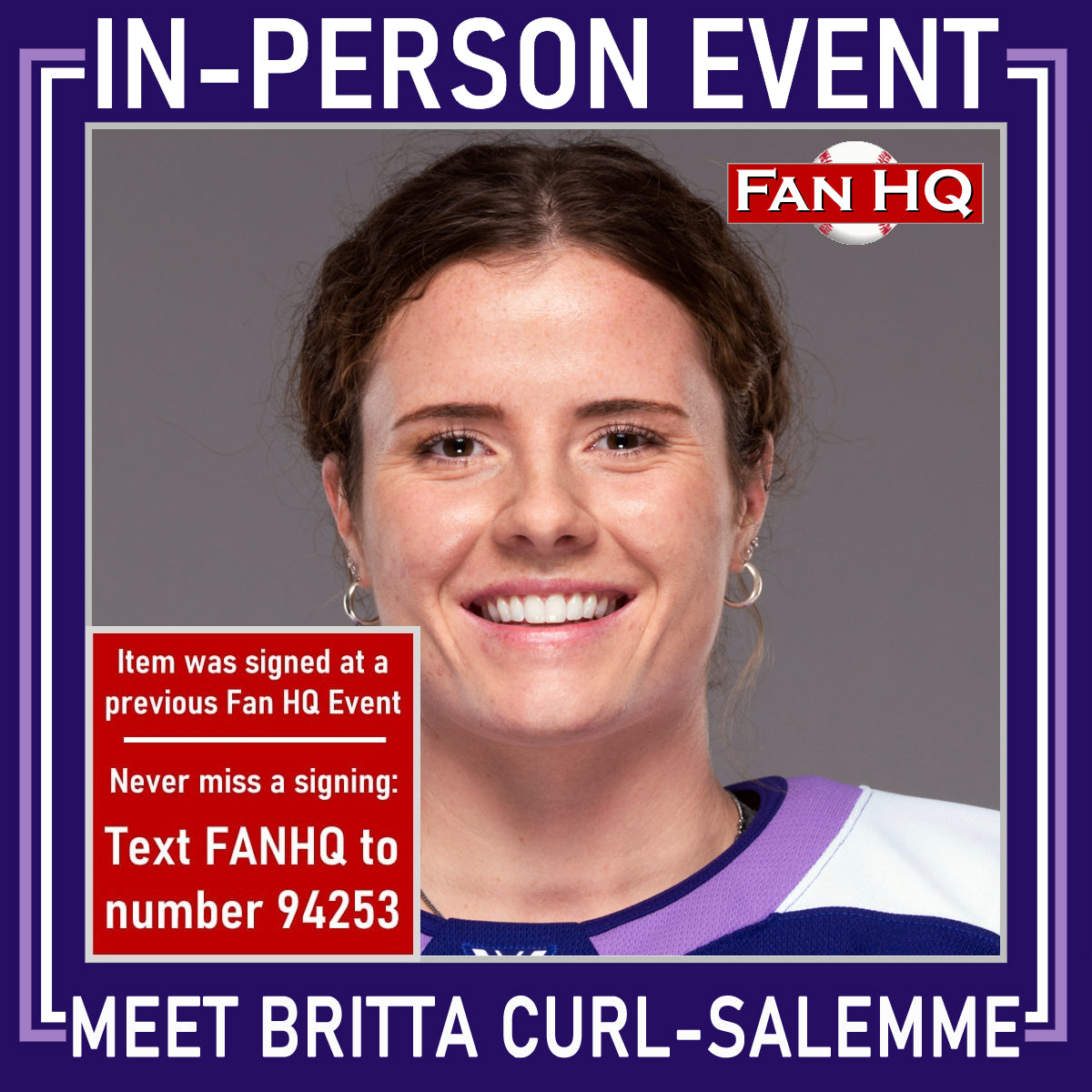 Britta Curl-Salemme autographed 8x10 photo with "25 Champs" inscription.