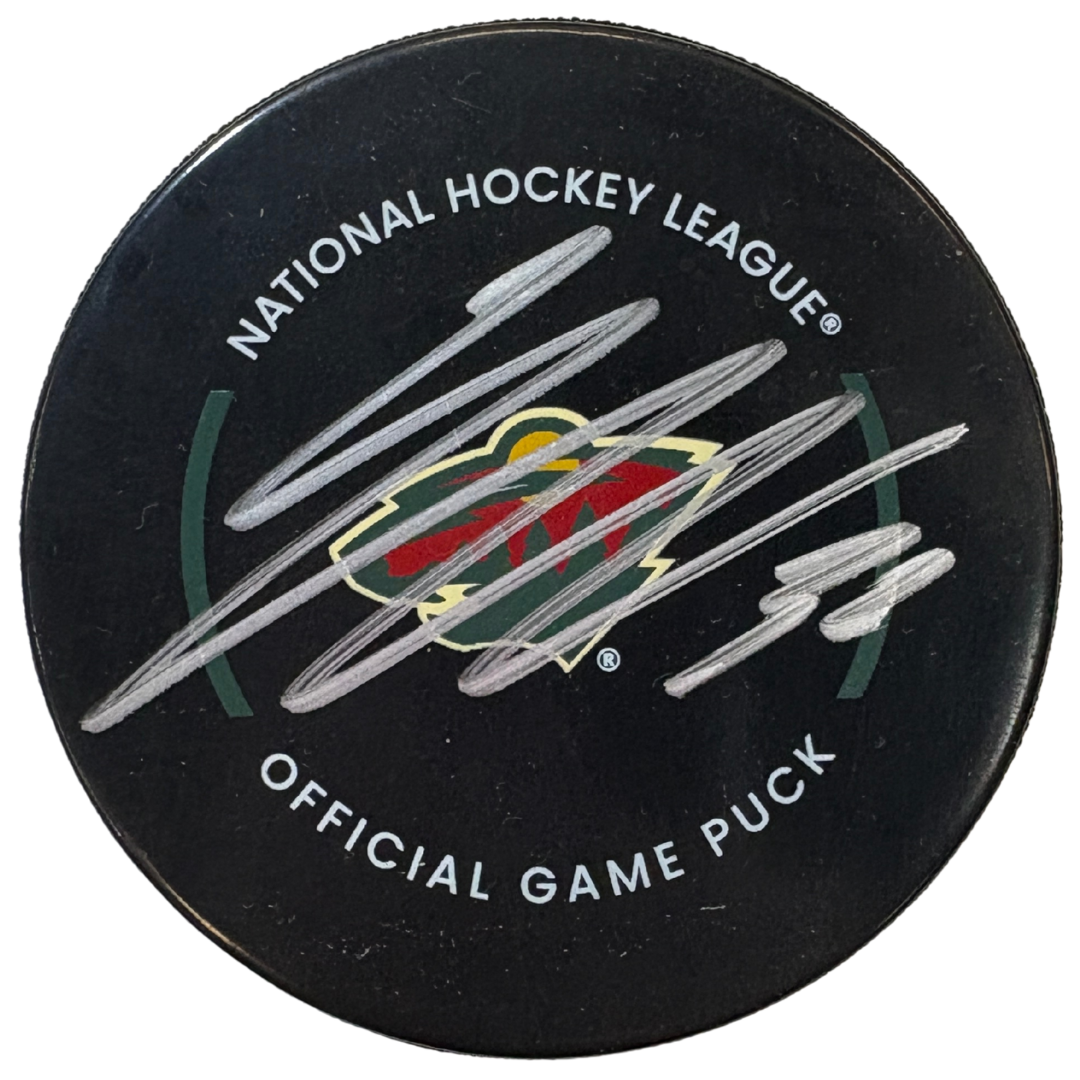 Jesper Wallstedt autographed Wild Official Game puck.