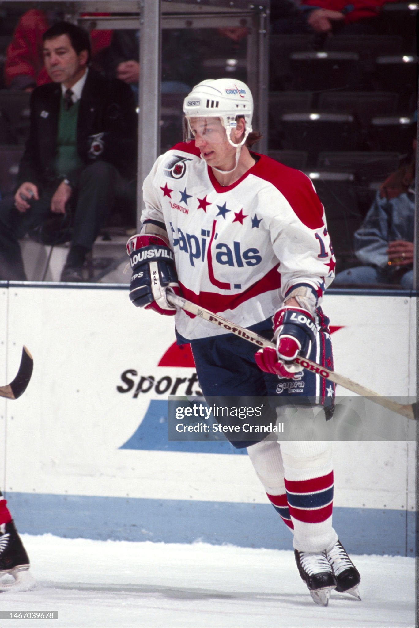 The stick shows heavy use, is still taped at the top and has Bondra's name stamped on the handle. We have included some photos in the listing that show Bondra using this exact model stick in game play in the early '90s.