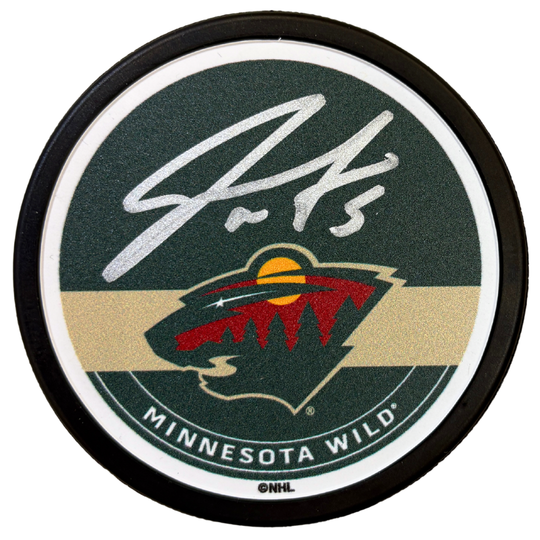 Jake Middleton Autographed Minnesota Wild Green Logo Puck