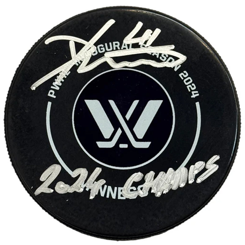 Denisa Krizova autographed PWHL Minnesota 2024 official game puck with "2024 Champs" Inscription.