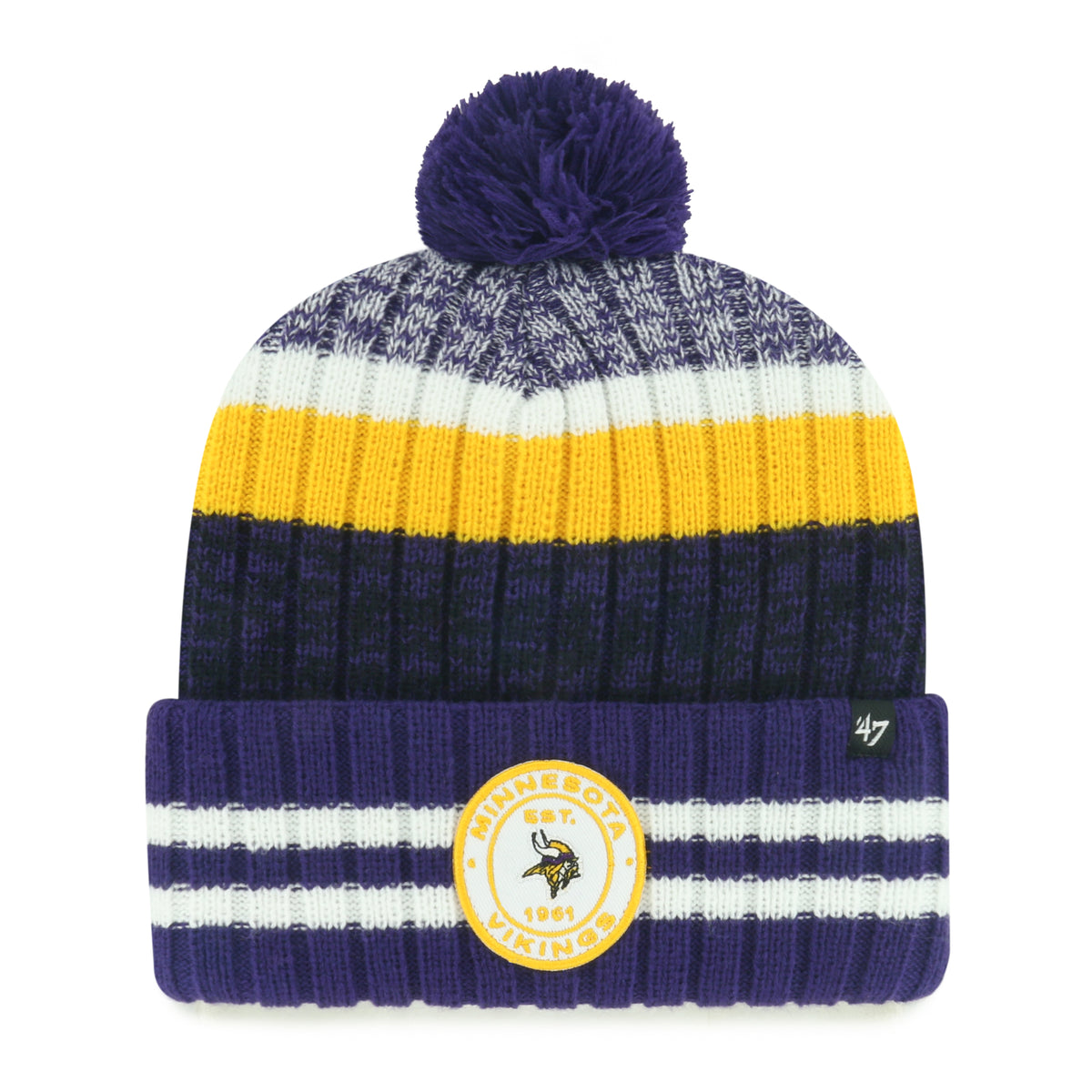 Minnesota Vikings '47 Brand Purple Stripe Quiver Cuff Knit w/ Pom
